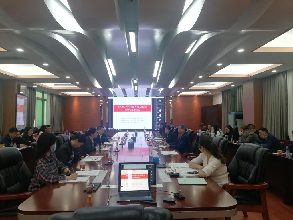 为了深入学习贯彻党的十九届六中全会精神,推动党的十九届六中全会精神及时融入思政课,更好发挥思政课的主渠道主阵地作用,12月10日,仲恺农业工程学院马克思主义学院联合广州科技职业技术大学马克思主义学院、广州华商职业学院马克思主义学院共同举办了“党的十九届六中全会精神融入思政课教学”专题研讨会。会议以线上线下相结合的方式举行。我校马克思主义学院叶利军教授和李平辉老师参加了现场研讨会,马院其他教师在分会场参加了线上研讨会。