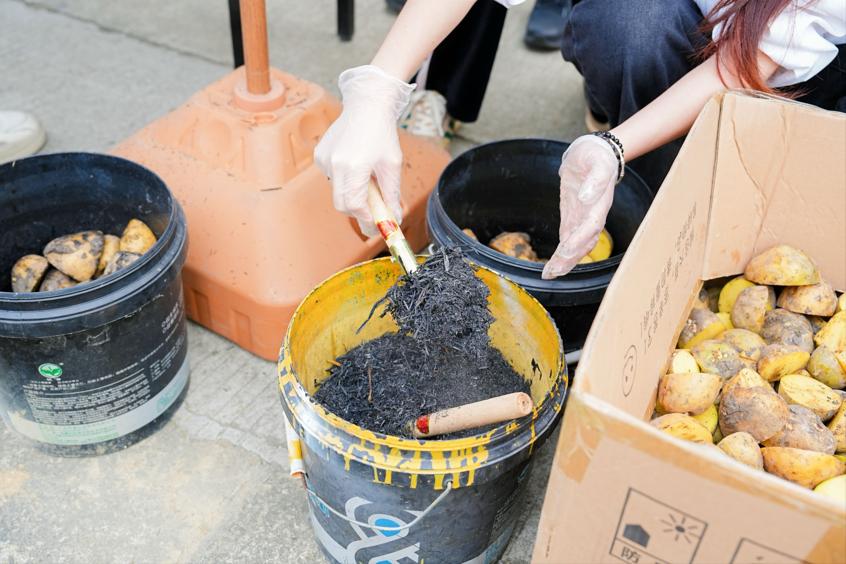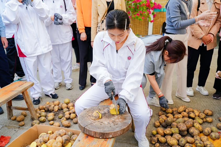 理论学习后,师生迅速转换角色,投身马铃薯种植实践。在农技人员指导下,大家按芽点科学切块,草木灰拌种防病促生,按标准间距挖坑、放种、覆土、施底肥、覆地膜保温保墒。泥土沾满双手,汗水湿透衣裳,却挡不住劳动热情。同学们在协作中体会农事不易,对“粒粒皆辛苦”有了具象认知,对农民辛勤付出倍增敬重。劳动间隙,大家品尝香气四溢的烤红薯,在轻松氛围中交流感悟:“这样的课堂既有理论高度,又有实践温度,让我们更加坚定服务乡村振兴的理想信念。”