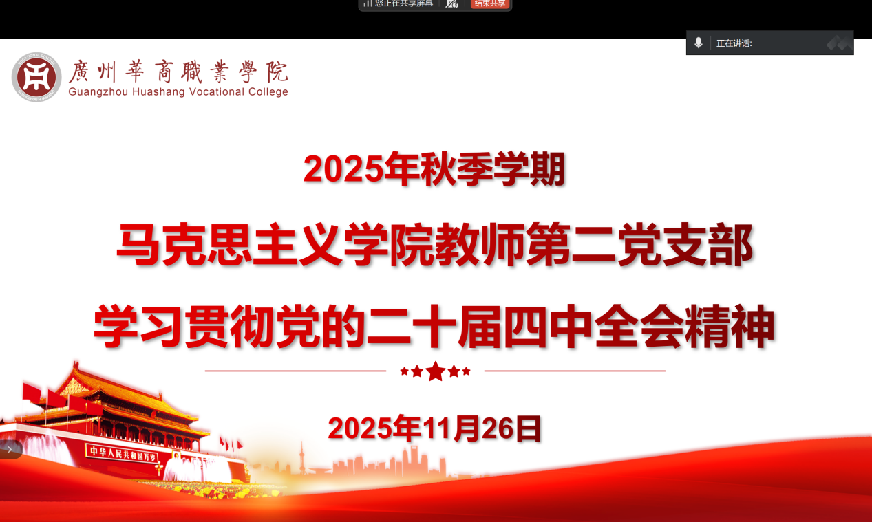 11月26日,马克思主义学院教师第二党支部组织开展了学习贯彻党的二十届四中全会精神专题活动。活动由党支部书记冉苒主持,支部全体党员教师参与学习。